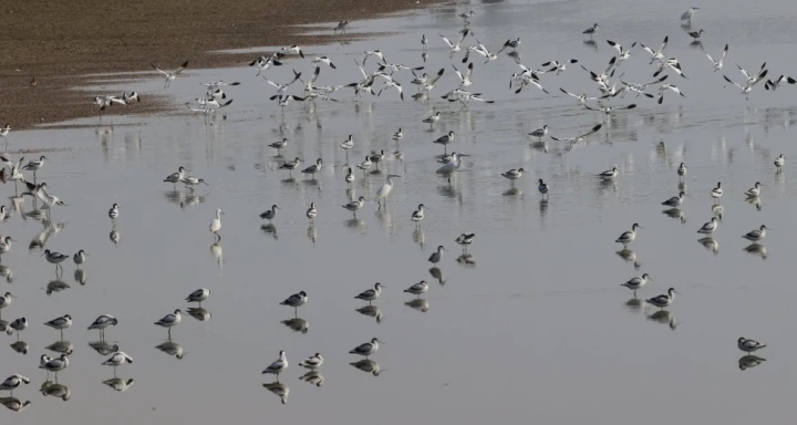 寧靜的水面承載著各種鳥類的安逸生活。