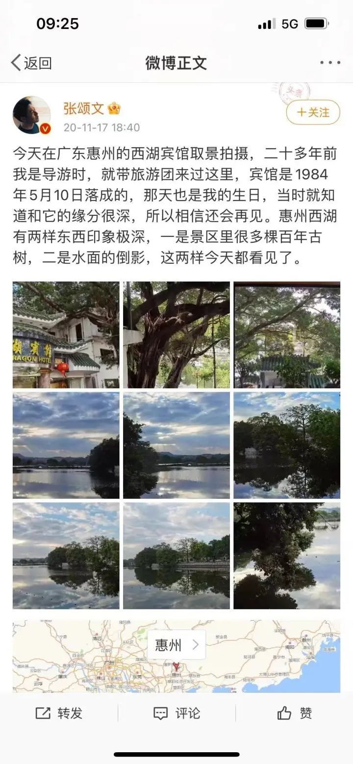 拍攝《掃黑決戰(zhàn)》期間張頌文多次發(fā)微博為惠州“代言”。