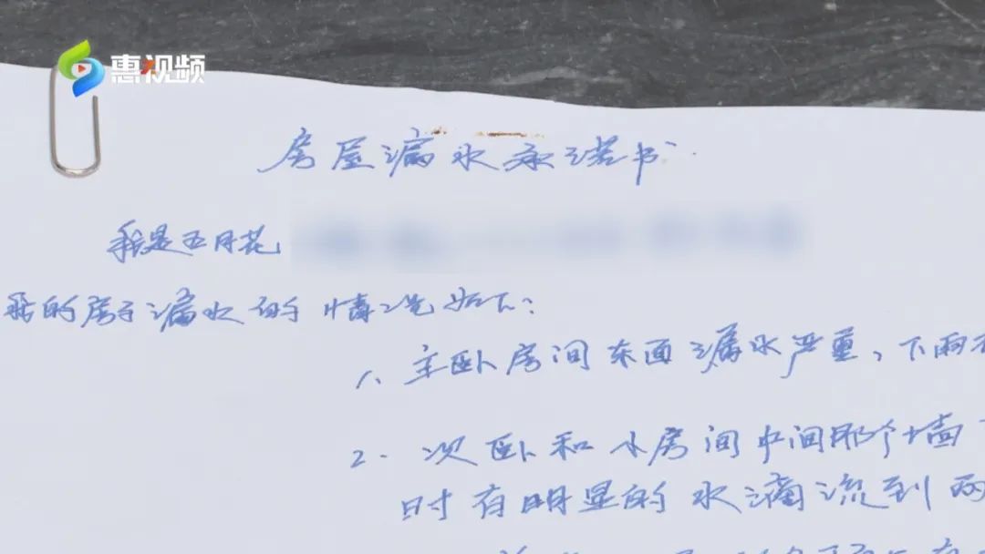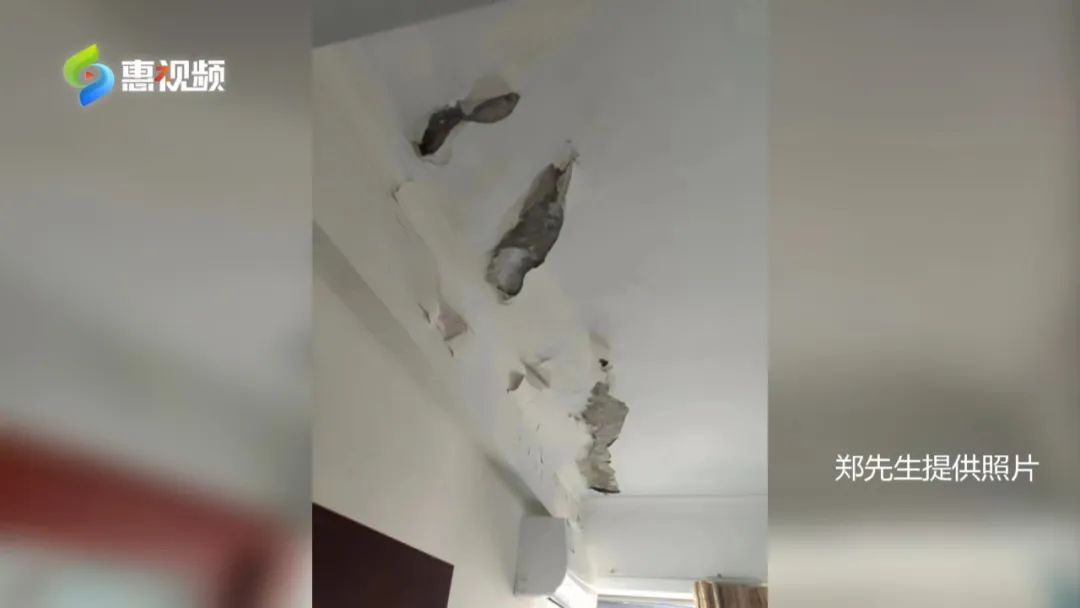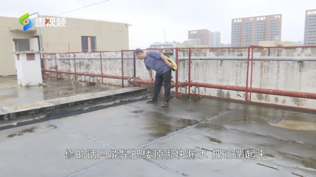 “師傅說補上也沒用,上面(漏水)不給你修,你補灰沒用。修的話把樓頂漏水部分把它鑿起來,中間給打上防水材料,搞完然后把它封上才可以。我們業(yè)主自己搞不了!