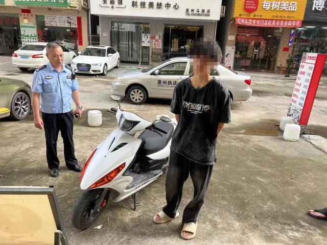 6月28日8時(shí)許,根據(jù)布署,部分警力開(kāi)始便衣埋伏在新樂(lè)三路街道中心,其余警力象往常一樣在道路的另一端巡邏檢查,全體警員密切關(guān)注著路面車輛動(dòng)態(tài)。在沐浴了2個(gè)多小時(shí)的烈日驕陽(yáng)后,一輛研判發(fā)現(xiàn)的目標(biāo)車終于出現(xiàn),在警員的停車示意和共同合圍下,車輛終被攔停;經(jīng)查,車輛為改裝的響喉摩托車,排氣管道中發(fā)出的聲音十分震耳。