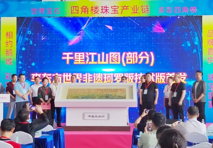 6月30日上午,惠州市珠寶玉石行業(yè)協(xié)會主辦的2023惠州珠寶玉石文化展覽會在惠州會展中心開幕,惠州四角樓珠寶創(chuàng)意園一款名為“唐世緣”的天然礦物顏料亮相,同時,國家高級工藝美術(shù)師、珂羅版技術(shù)傳承人李東方使用天然礦物顏料“復(fù)活”的《千里江山圖》(局部)正式首發(fā),色彩鮮艷,讓人眼前一亮。
