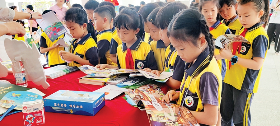 學(xué)生在看安全知識繪本。 惠州日報(bào)記者范文燕 姜勁宇 見習(xí)記者蘇凌奕 通訊員羅志雄 攝