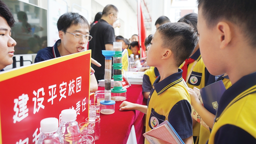 學(xué)生在安全宣講展區(qū)學(xué)習(xí)飲水安全知識;葜萑請(bào)記者范文燕 姜勁宇 見習(xí)記者蘇凌奕 通訊員羅志雄 攝