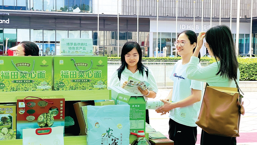 除了黔西南州農產品外,現場還展銷了來自惠陽、博羅、龍門等地具有惠州本土特色的農產品,如福田菜心、龍門蜂蜜、鎮(zhèn)隆荔枝等。各縣區(qū)供銷社以及供銷社直屬企業(yè)在現場熱情地向市民進行推介。