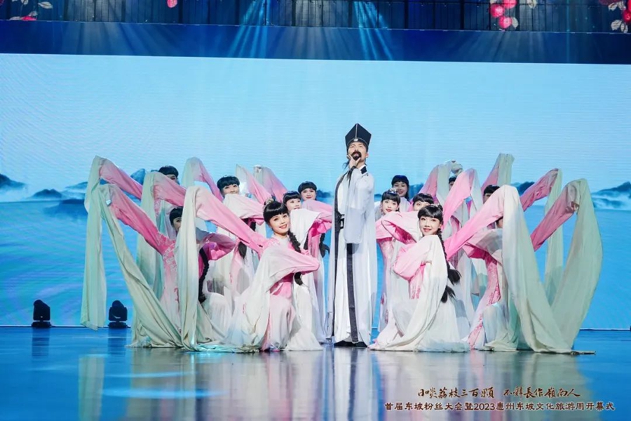 “日啖荔枝三百顆 不辭長(zhǎng)作嶺南人”首屆東坡粉絲大會(huì)暨2023惠州東坡文化旅游周開幕式以“荔枝”為媒,打造了一場(chǎng)集互動(dòng)、視聽、娛樂、觀賞為一體的東坡文化原創(chuàng)精品主題晚會(huì),帶來了一場(chǎng)東坡寓惠內(nèi)涵的沉浸式體驗(yàn),烹出了一桌嶺南東坡文化文旅IP的饕餮盛宴。