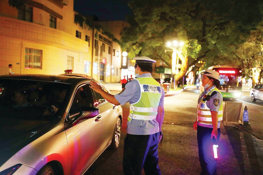 惠州交警夜查酒駕等重點交通違法行為;葜萑請笥浾邚埶嚸 攝
