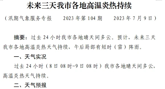 中央氣象臺7月9日06時繼續(xù)發(fā)布高溫橙色預(yù)警: