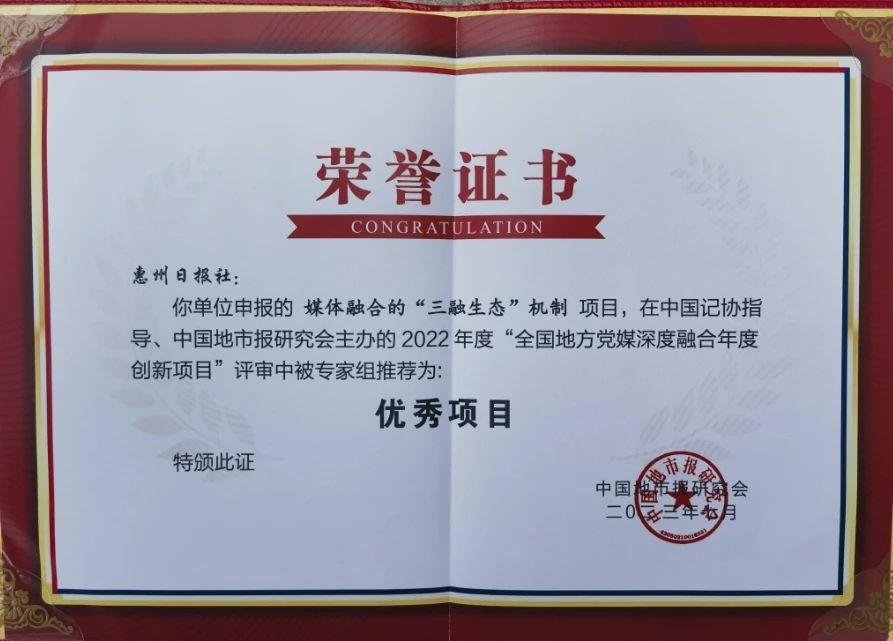 媒體融合的“三融生態(tài)”機制入選2022年度“全國地方黨媒深度融合年度創(chuàng)新項目”優(yōu)秀項目。該項目包含三方面:一是內部融合,加強全媒體傳播體系建設,塑造主流輿論新格局,優(yōu)化全媒體介質體系,以項目化、扁平化實現(xiàn)內部高質量融合;二是與城相融,推動“媒體+”,構建高質量發(fā)展的平臺抓手,發(fā)展“媒體+文旅”“媒體+教育”“媒體+智庫”“媒體+數(shù)字科技”等項目;三是城際融合,推動城際媒體相融,彰顯媒體擔當,以文化風情、風景名勝、交通聯(lián)系等方面為紐帶,與兄弟城市媒體廣泛開展宣傳聯(lián)動、產業(yè)互動。
