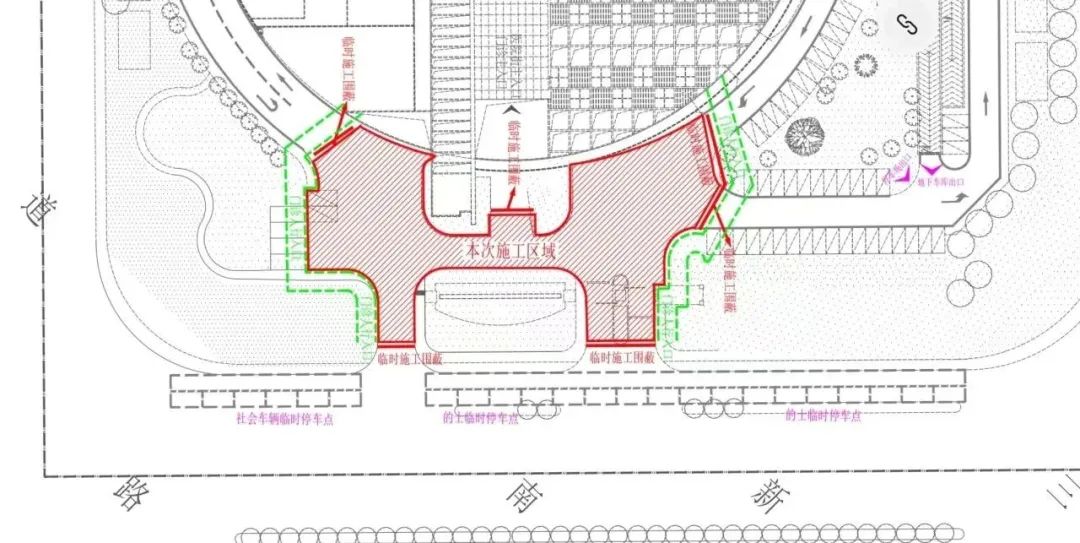 三、改造期間行人可從南門改造區(qū)域?qū)iT通道進出。車輛需繞行,可從東門和西門進出,北門只可出不可進