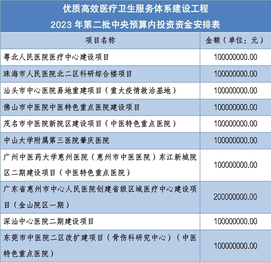 近日,廣東省財(cái)政廳轉(zhuǎn)下達(dá)財(cái)政部和省發(fā)改委相關(guān)通知,廣東10個(gè)醫(yī)院建設(shè)項(xiàng)目被列入國(guó)家優(yōu)質(zhì)高效醫(yī)療衛(wèi)生服務(wù)體系建設(shè)工程2023年第二批中央預(yù)算內(nèi)投資計(jì)劃,共計(jì)獲得項(xiàng)目支持資金11億元。其中,惠州市中心人民醫(yī)院創(chuàng)建省級(jí)區(qū)域醫(yī)療中心建設(shè)項(xiàng)目(金山院區(qū)一期)、廣州中醫(yī)藥大學(xué)惠州醫(yī)院(惠州市中醫(yī)醫(yī)院)東江新城院區(qū)二期建設(shè)項(xiàng)目(中醫(yī)特色重點(diǎn)醫(yī)院)名列其中。