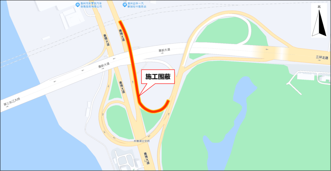 受影響車輛請(qǐng)通過三環(huán)北路掉頭繞行,或選擇惠州大道等道路繞行。