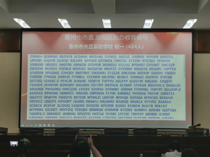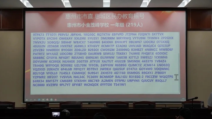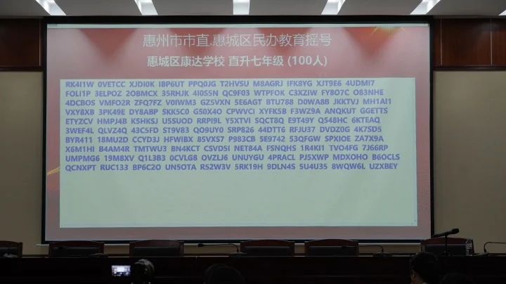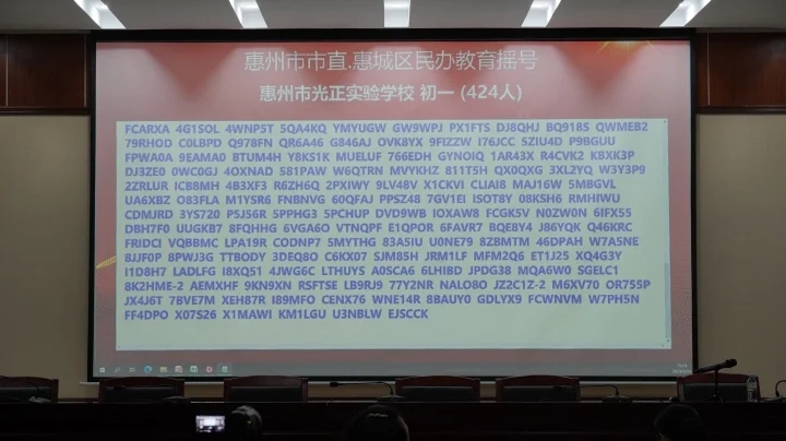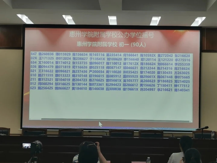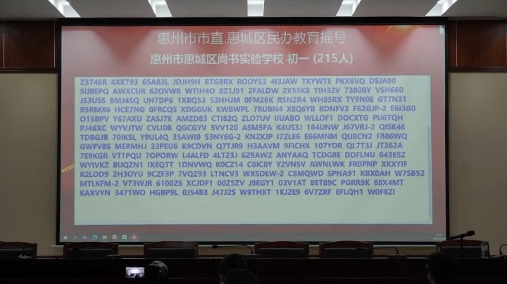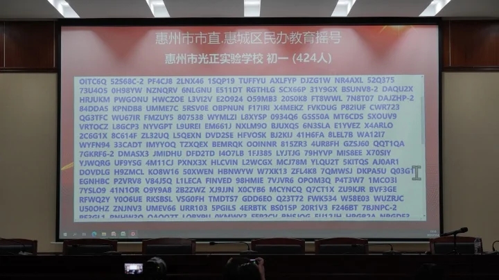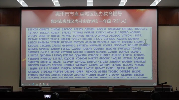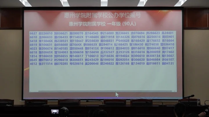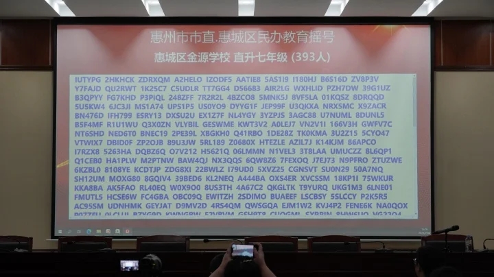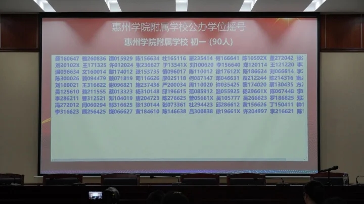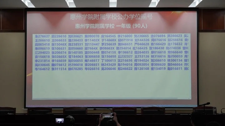 當天下午,共進行了惠州學院附屬學校部分公辦學位、惠城區(qū)民辦學校校內(nèi)直升、惠城區(qū)(含市直)民辦學校起始年級等三場搖號。