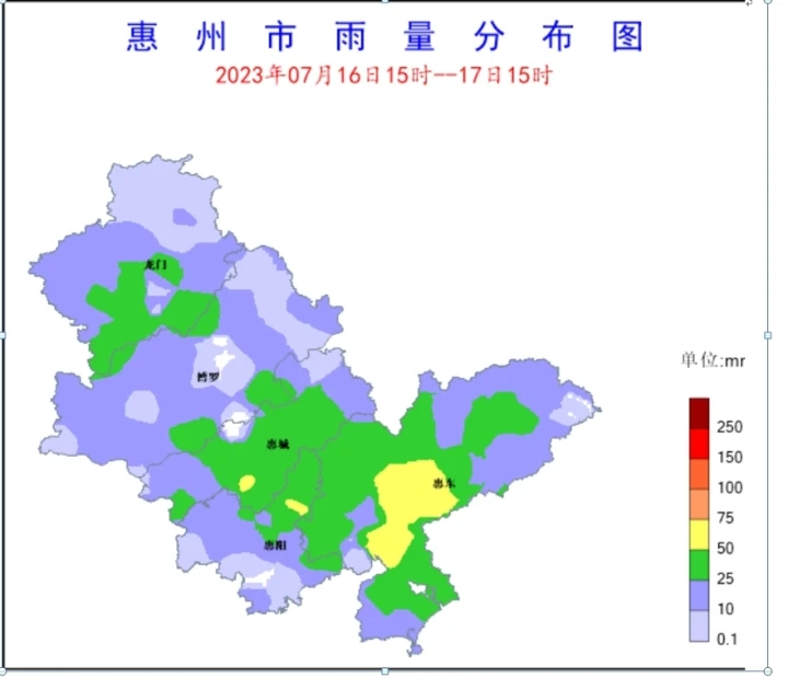 【天氣實(shí)況】過(guò)去24小時(shí)(16日15時(shí)-17日15時(shí)),我市南部地區(qū)出現(xiàn)了大雨到暴雨,北部地區(qū)中到大雨,最大降水量出現(xiàn)在惠城河南岸60.3毫米,并伴有最大23.6米/秒(9級(jí))的雷暴大風(fēng),出現(xiàn)在昨天下午4:00博羅龍溪。惠州石油平臺(tái)錄得最大陣風(fēng)27.8米/秒(10級(jí),22時(shí)),大亞灣三門島錄得最大陣風(fēng)35米/秒(12級(jí),05時(shí))。