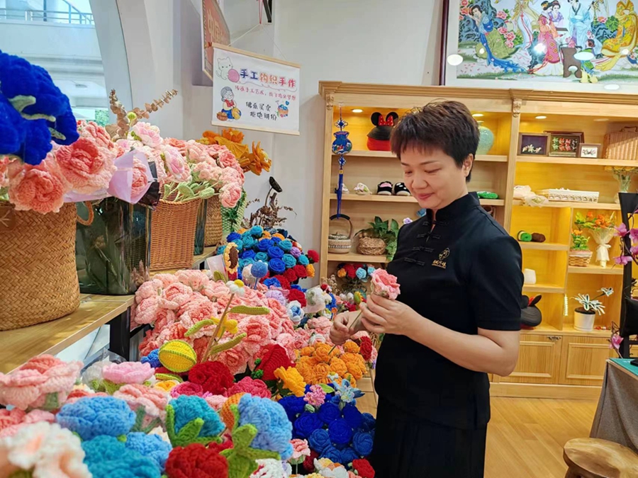 如今,焦艷紅最大的心愿就是多帶動(dòng)一些姐妹,她發(fā)起成立了“鵝城巧娘”品牌,計(jì)劃深入鄉(xiāng)村,陸續(xù)在全市范圍內(nèi)落地“巧娘合作社”,開展包含毛線鉤編等多種手工藝的傳承發(fā)展,為各地方提供多個(gè)“媽媽?shí)彙保尭嗟慕忝每梢砸贿厧抟贿呝嶅X,通過傳統(tǒng)手工藝創(chuàng)收,編織出屬于自己的絢麗人生。