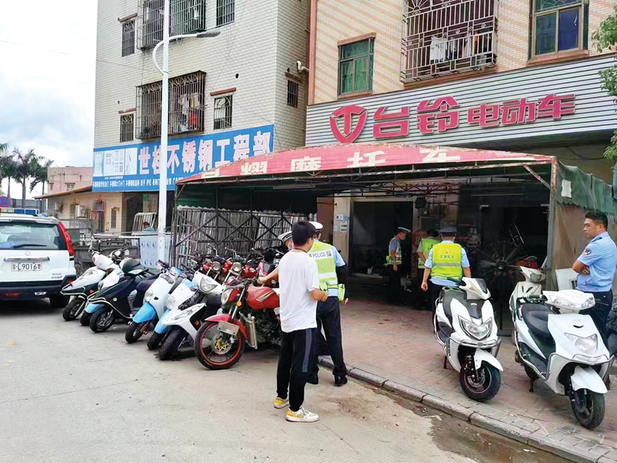 車輛非法改裝、“飆車炸街”等交通違法行為,不僅擾亂居民正常工作和生活,還容易給道路交通造成極大安全隱患。根據(jù)夏季交通安全專項整治行動部署,市公安局交警支隊仲愷大隊(以下簡稱“仲愷大隊”)不斷加大對飆車違法行為打擊力度,通過前期摸排暗訪,發(fā)現(xiàn)仲愷高新區(qū)瀝林鎮(zhèn)英光村某電動車維修店存在非法改裝摩托車、電動車違法行為。