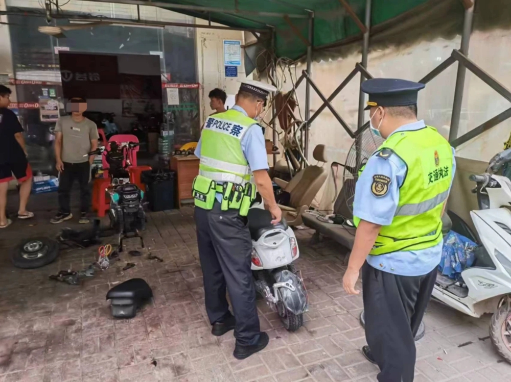 惠州交警檢查電動(dòng)車是否存在非法改裝。