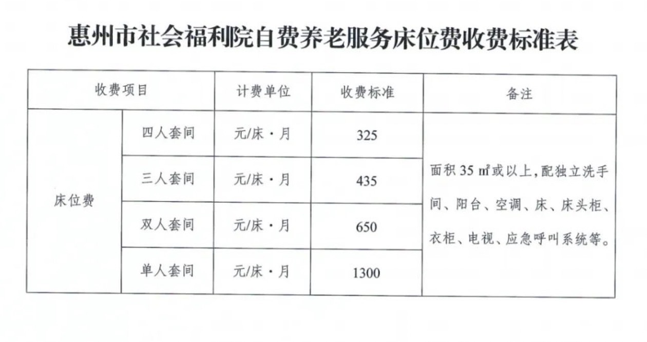 日前,惠州市發(fā)展和改革局、惠州市民政局公布《關(guān)于調(diào)整惠州市社會(huì)福利院自費(fèi)養(yǎng)老服務(wù)床位費(fèi)收費(fèi)標(biāo)準(zhǔn)的批復(fù)》。自今年8月1日起,惠州市社會(huì)福利院將上調(diào)社會(huì)老人養(yǎng)老床位的收費(fèi)標(biāo)準(zhǔn)。