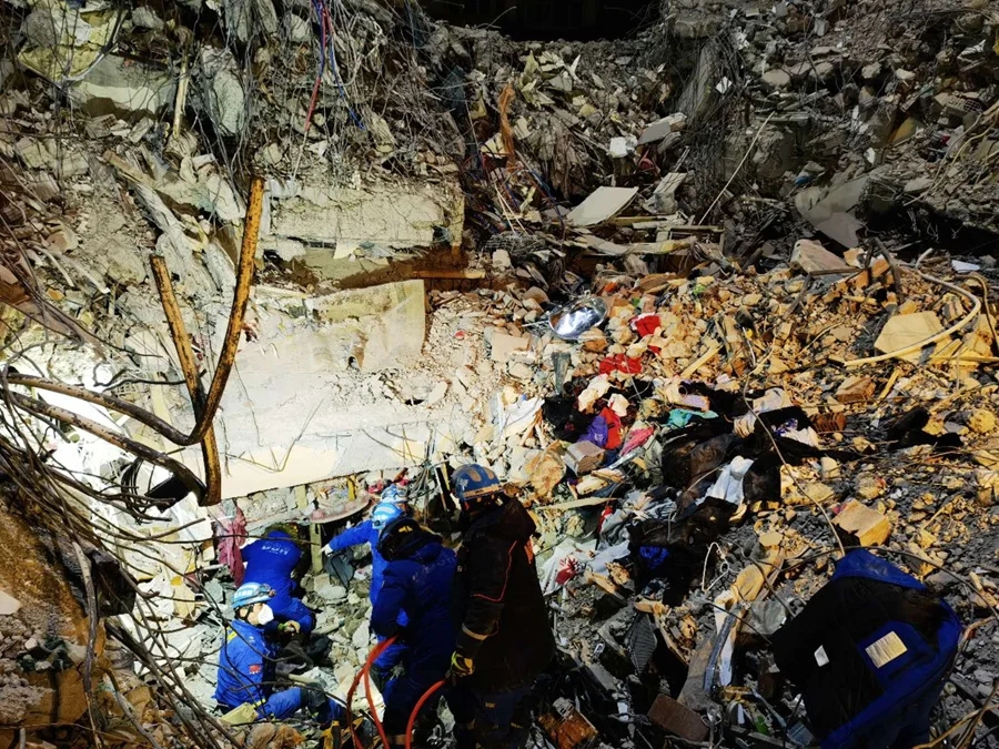 在土耳其8天的救援行動中,10名隊員克服生理和心理的極限,在零下十幾攝氏度的天氣中,利用生命探測儀對可能存在生命跡象的區(qū)域進(jìn)行地毯式搜索,累了困了席地休息,餓了啃點面包、喝點水,沒有大型救援工具則就地取材,借助木大梁、鐵鍬、錘子等進(jìn)行人工開挖,只為最大限度地挽救幸存者。