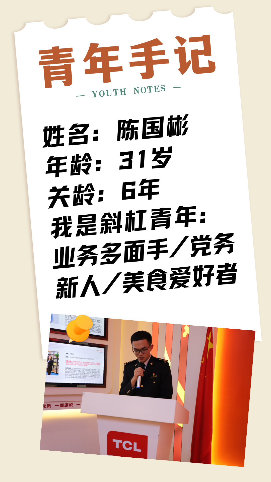 我是來自惠州海關(guān)綜合業(yè)務(wù)科的陳國彬。還記得自己入關(guān)的第一個崗位是辦公室機要崗。起初當我面對一份份文件和一摞摞微微發(fā)黃的歷史檔案時,無從下手。當辦公室的老檔案人給我講述陳為人夫婦、張人亞父子用生命守護檔案的光輝事跡后,我的內(nèi)心深感慚愧,深刻認識到守得住初心耐得住寂寞是默默無聞的檔案工作者必備的特質(zhì),在日積月累的學(xué)習(xí)和實踐中,自己逐漸從不知所措到有的放矢。去年,結(jié)束了四年的辦公室磨礪,如今的我正接受著新的挑戰(zhàn),面對企業(yè)的困惑、報關(guān)員的疑難,辦事員的急迫,我變得更加從容、果敢,在業(yè)務(wù)改革,政策宣講,基層黨建工作上發(fā)揮著自己的作用,從一個業(yè)務(wù)小白正慢慢成長為業(yè)務(wù)多面手。