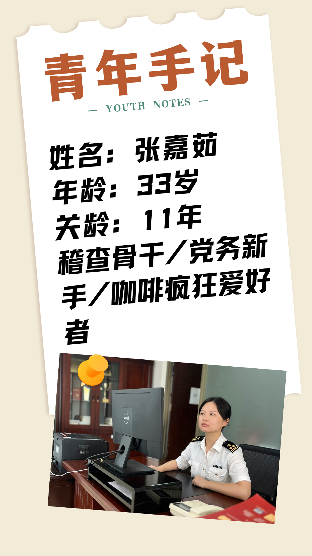我是惠州海關(guān)稽核查二科張嘉茹。2017年底,在我的27歲,我加入了稽查的大家庭。