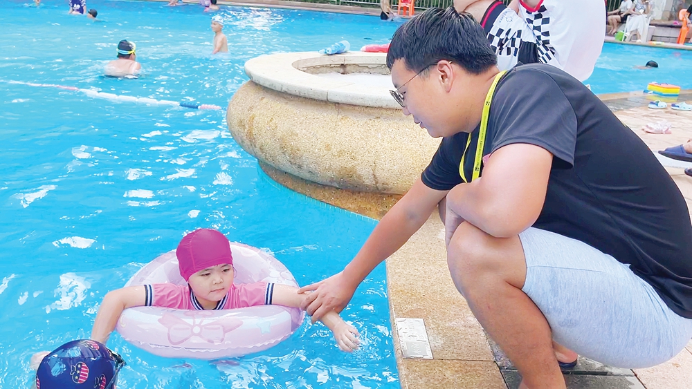 酷暑難耐,不少市民選擇到泳池尋覓清涼,泳池旁一個個曬得黝黑的救生員全神貫注地環(huán)視泳池,烈日下他們無懼“烤”驗,確保大家玩得開心、安心。