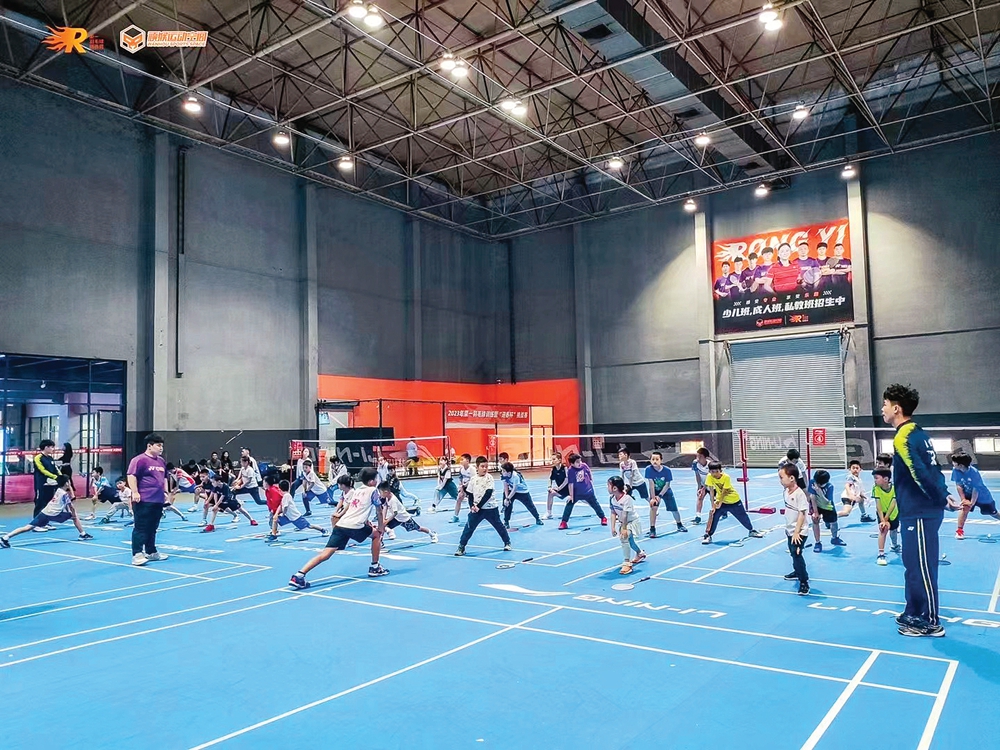 孩子們?cè)趫?chǎng)館內(nèi)上羽毛球培訓(xùn)課。