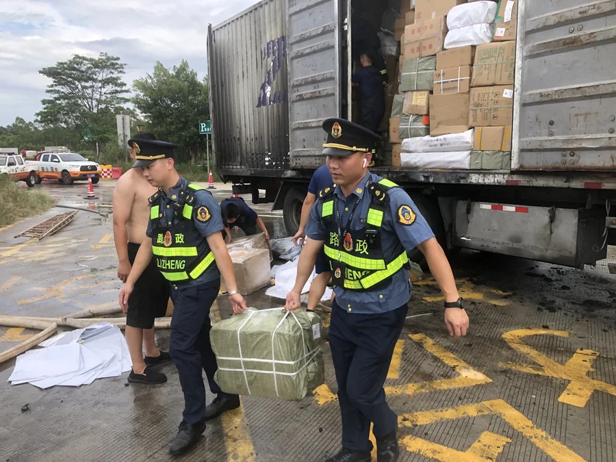 經(jīng)初步了解,該車為某快遞公司運(yùn)貨車,從浙江出發(fā)前往廣州。行駛至石壩服務(wù)區(qū)時(shí),由于剎車片過熱引起輪胎起火。在確認(rèn)車輛無復(fù)燃風(fēng)險(xiǎn)后,路政人員協(xié)助司機(jī)轉(zhuǎn)運(yùn)貨物,讓快遞盡快送到買家手中!罢媸翘兄x你們了,要不是你們出手相救,我這車快遞可要遭殃了!”看著滿地堆放、保存完好的貨物,司機(jī)激動(dòng)地對(duì)大家連連道謝。