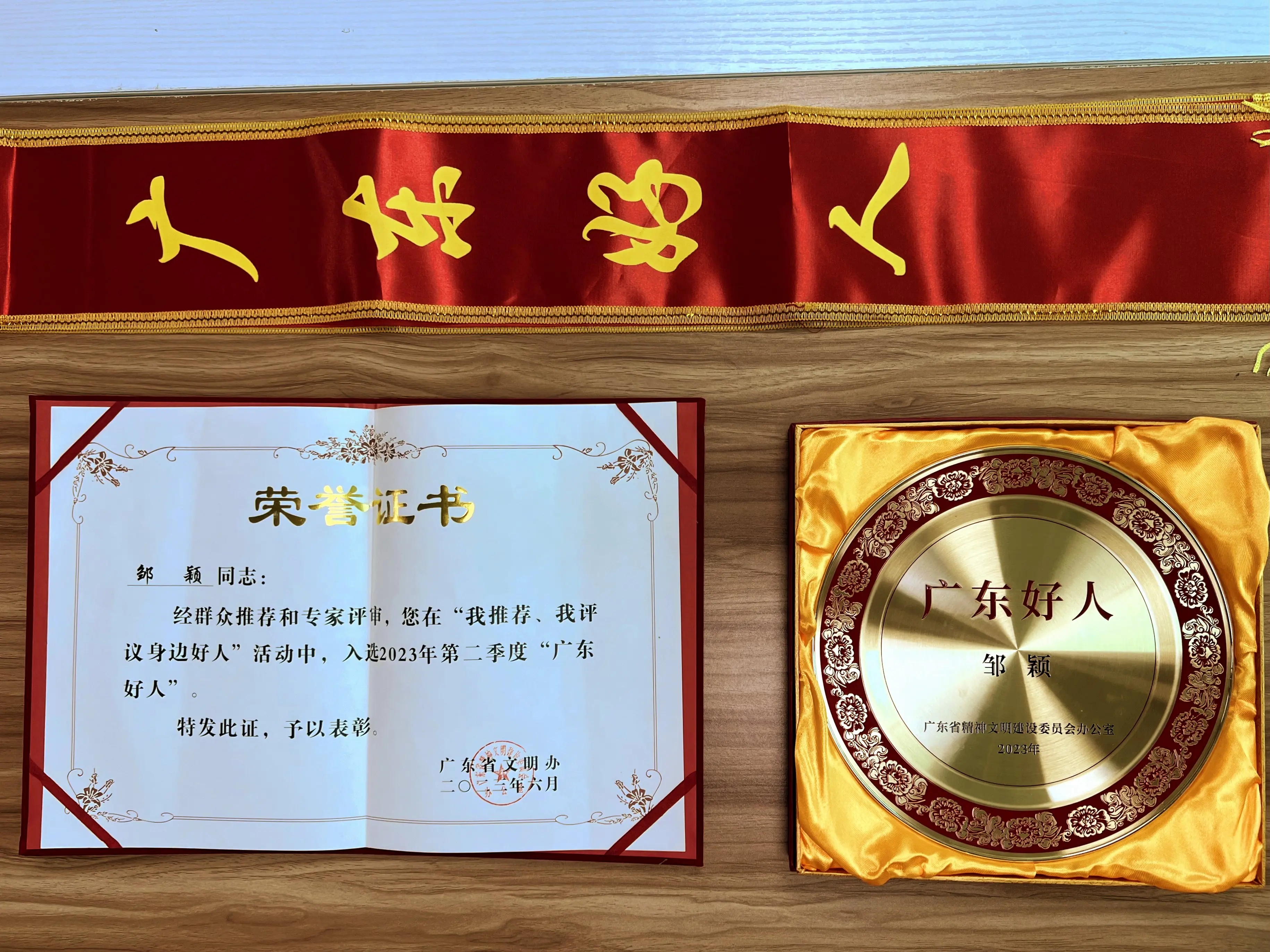 惠州日報訊 (記者黃宇翔)廣東省精神文明建設(shè)委員會辦公室日前發(fā)布2023年第二季度“廣東好人”名單,龍門縣的鄒穎獲評2023年第二季度誠實守信類“廣東好人”。8月9日,惠州市委宣傳部副部長、市文明辦主任呂淑歡帶隊為其頒發(fā)榮譽(yù)證書。