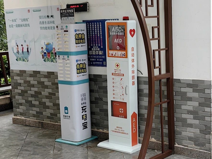 布設(shè)在惠州西湖景區(qū)(平湖門)的AED;葜萑請笥浾咧苤锹 攝