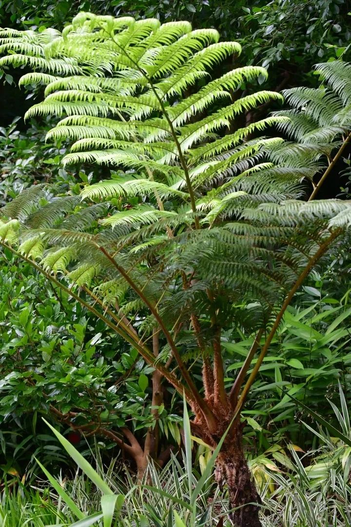 在惠州植物園陰生園里,有多株“與恐龍同時代”樹,它們就是黑桫欏和筆筒樹,都屬于國家二級保護野生植物。早在數(shù)億年前的侏羅紀,蕨類植物就在這顆星球上盤根錯節(jié),稱霸整個植物界,而黑桫欏和筆筒樹都屬于桫欏科樹狀植物,起源于約3億6000年前的中生代侏羅紀,是當時恐龍的主要食糧,被人們稱為植物界的“活化石”;葜葜参飯@通過遷地保護,在陰生園內(nèi)種了7株黑桫欏和2株筆筒樹,讓這些珍稀瀕危植物重返人們視野。