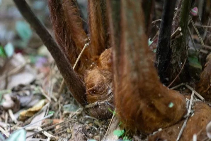 在植物園鄉(xiāng)土珍稀園里,有一些看似不起眼的“野草”,但它可是國家二級保護野生植物。金毛狗屬于樹形蕨類植物,喜愛明亮的散射光線、溫暖濕潤的氣候。它露出地面部分密被金黃色長茸毛,狀似伏地的金毛狗頭,才因此得名。