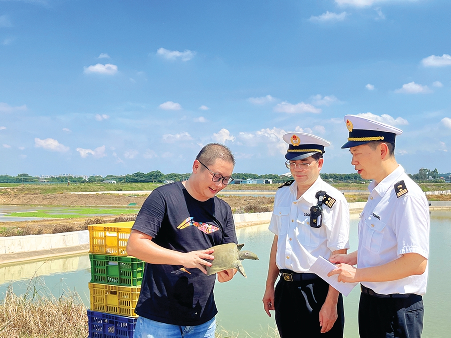 “惠州地區(qū)現(xiàn)有出境水生動(dòng)物注冊(cè)登記養(yǎng)殖場(chǎng)7家,其中甲魚養(yǎng)殖場(chǎng)2家,養(yǎng)殖面積6000多畝,年產(chǎn)量6900噸。為保障轄區(qū)甲魚順利出口,我們推動(dòng)企業(yè)建立完善自檢自控體系,提供一對(duì)一優(yōu)質(zhì)服務(wù),依托海關(guān)檢測(cè)資源,加大出口檢測(cè)力度,提升產(chǎn)品核心競(jìng)爭(zhēng)力;同時(shí)加強(qiáng)聯(lián)防聯(lián)控,與地方農(nóng)業(yè)部門建立定期溝通機(jī)制,開展養(yǎng)殖水體聯(lián)合監(jiān)測(cè),從源頭保障產(chǎn)品質(zhì)量安全!被葜莺jP(guān)查檢二科科長(zhǎng)黃志堅(jiān)說。
