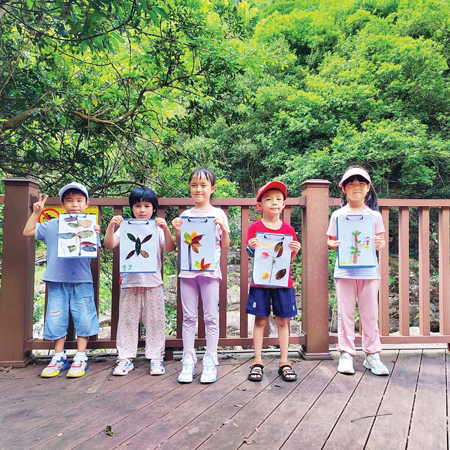 小朋友利用收集的樹葉制作拼貼畫。 惠州日?qǐng)?bào)記者游璇鈺 通訊員惠環(huán)宣 攝