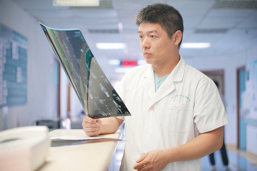 鐘浩博認(rèn)真查看患者的片子。