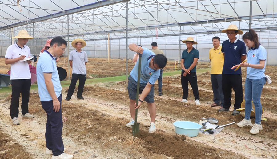 “采樣工作應嚴格按照規(guī)范進行,取樣時,要注意避讓壟溝和施肥坑!痹谝惶幏N植大棚內,廣東省科學院生態(tài)環(huán)境與土壤研究所有關負責人還向大家進行了采樣作業(yè)的實操演示,并與現場人員進行交流、互動。