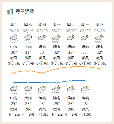 展望21日后,500hpa副高開始加強,全省大部氣溫升高,雨勢減弱,副高邊緣地區(qū)如韶關(guān)、清遠仍有雷雨,局部大雨,其余大部多云,午后有分散熱對流降雨。