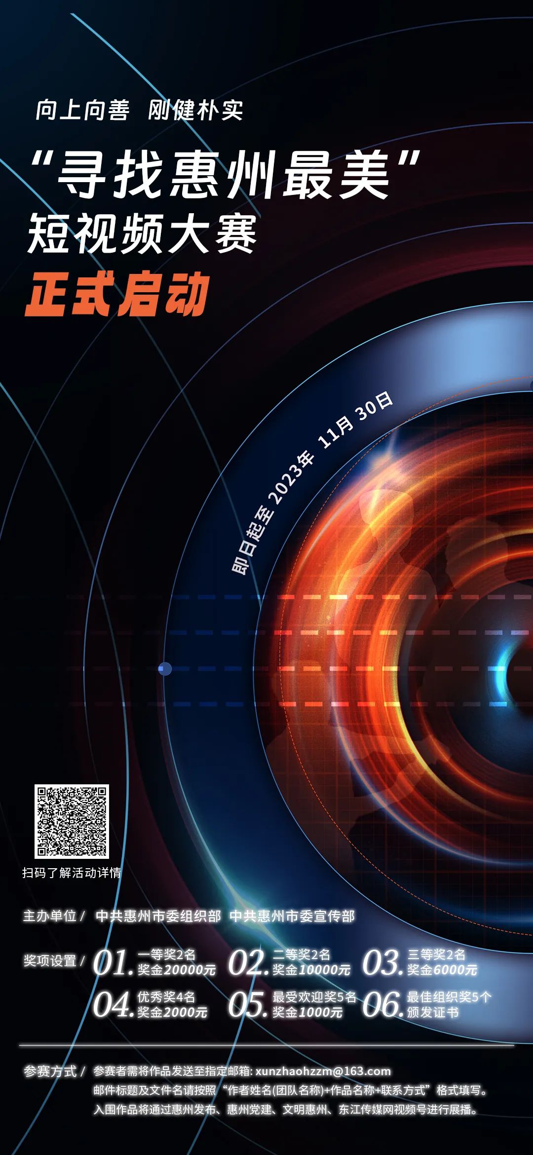 入圍作品將通過(guò)惠州發(fā)布、惠州黨建、文明惠州、東江傳媒網(wǎng)視頻號(hào)進(jìn)行展播