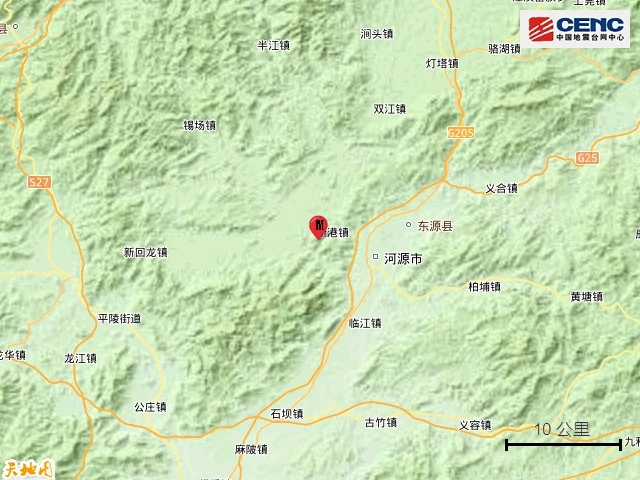 在廣東河源市源城區(qū)發(fā)生2.8級地震(有感)