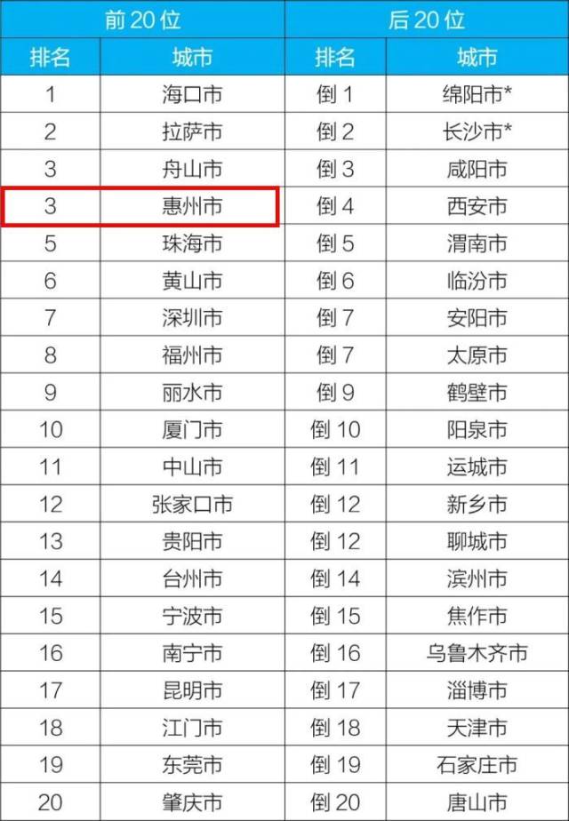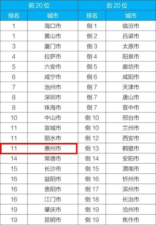7月,168個(gè)重點(diǎn)城市中,惠州空氣質(zhì)量位于全國(guó)第11名!