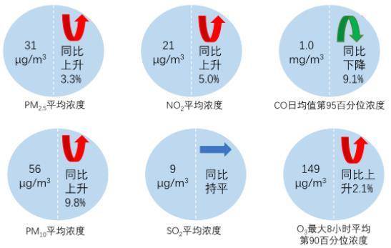 O3平均濃度為149微克/立方米,同比上升2.1%;