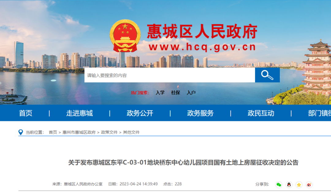 惠州部分地方房屋征收信息