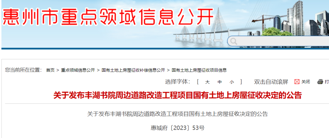 位于惠城區(qū)豐湖書院周邊道路改造工程項目征收范圍內(nèi)的國有土地上房屋和其他建(構(gòu))筑物(詳見現(xiàn)場張貼的房屋征收范圍圖)。
