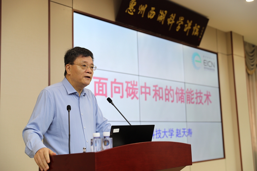 8月24日上午,惠州西湖科學講壇(第二十一講)在豐湖書院澄觀樓舉行。中國科學院院士、南方科技大學碳中和能源研究院院長趙天壽以“面向碳中和的儲能技術(shù)”為主題作專題報告,結(jié)合研究實踐,探討、講解了實現(xiàn)碳中和目標對儲能技術(shù)的要求,分析不同種類新型儲能技術(shù)發(fā)展現(xiàn)狀與面臨挑戰(zhàn),闡述儲能領(lǐng)域技術(shù)發(fā)展方向與產(chǎn)業(yè)機會。他認為,目前長時儲能技術(shù)是重要發(fā)展方向;葜菰诎l(fā)展新型儲能產(chǎn)業(yè)方面具有優(yōu)勢,要結(jié)合本地實際加強長時儲能技術(shù)研發(fā)力度,搶占產(chǎn)業(yè)制高點。
