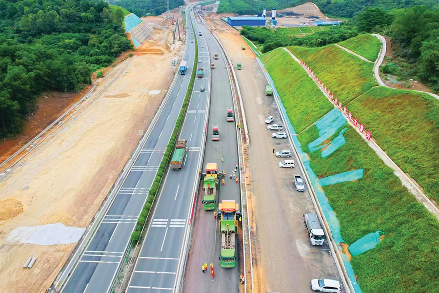 惠河高速改擴(kuò)建項(xiàng)目路面施工現(xiàn)場;葜萑請笥浾叽鹘 通訊員姜雅寧 攝