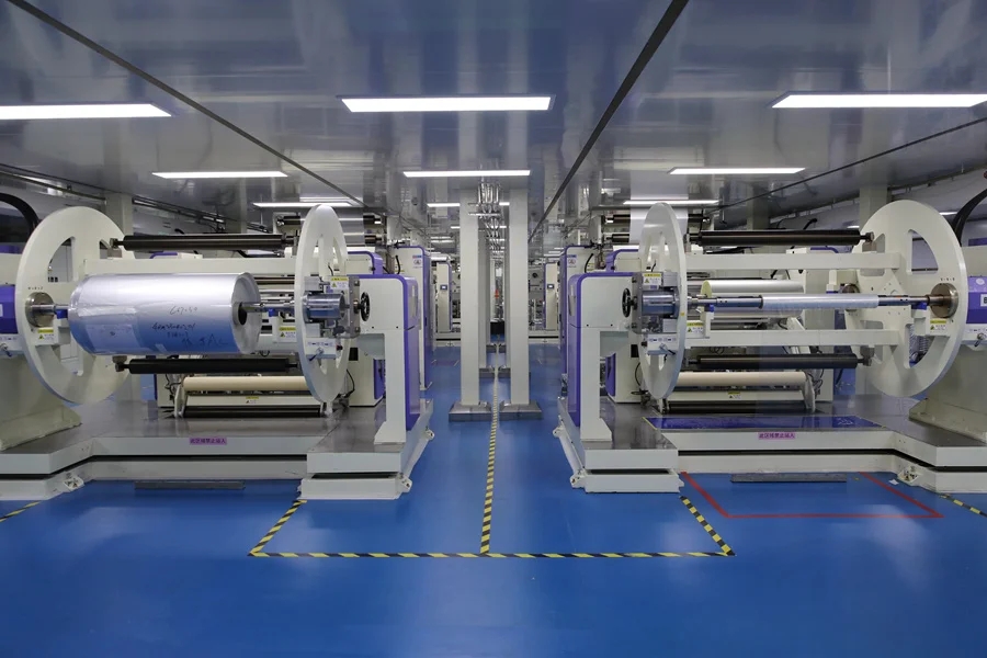 寬敞、整潔、明亮的車(chē)間里,每臺(tái)大機(jī)器都在快速運(yùn)轉(zhuǎn),從基材放卷到最后收卷出品鋁塑膜,一臺(tái)機(jī)器只需兩三個(gè)人操作,基本實(shí)現(xiàn)了全程自動(dòng)化……這里是廣東廣麟材耀新能源材料有限公司(以下簡(jiǎn)稱“廣麟材耀”)的生產(chǎn)車(chē)間。