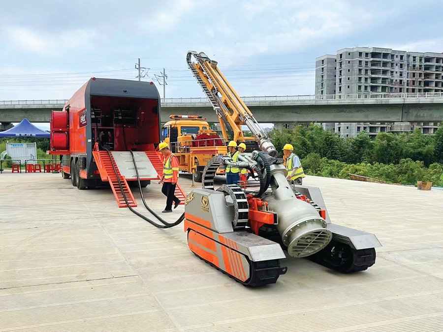 應(yīng)急救援隊伍演練排水設(shè)備;葜萑請笥浾邉⒔ㄍ 特約通訊員李佳曉 攝