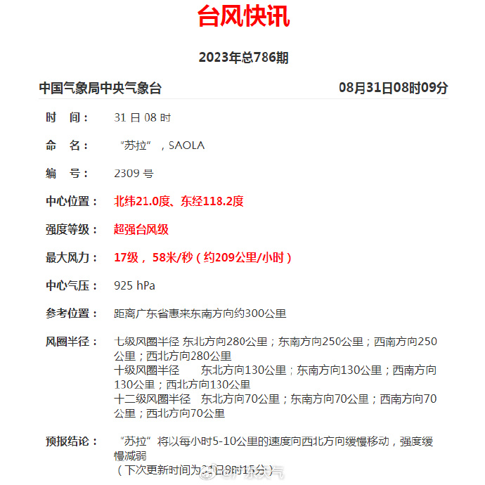 【“蘇拉”將于1日下午到夜間上岸】今晨8時,超強臺風“蘇拉”繼續(xù)維持在17級,