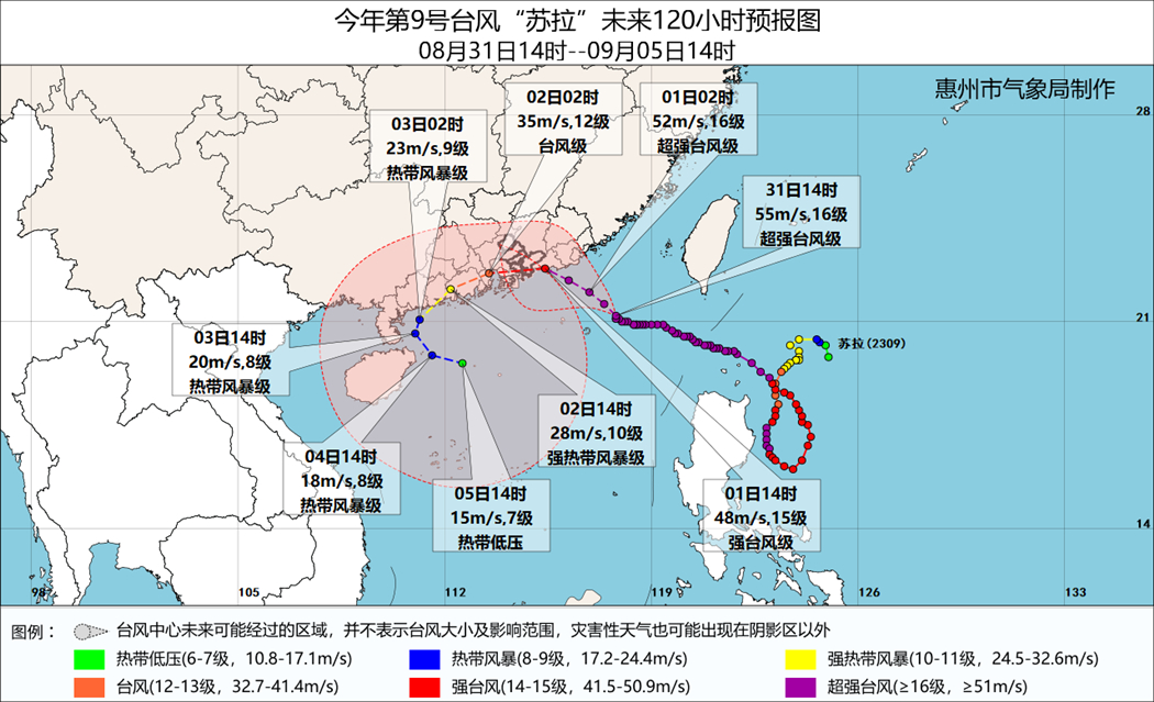 根據(jù)氣象部門(mén)預(yù)測(cè),今年第9號(hào)臺(tái)風(fēng)“蘇拉”(超強(qiáng)臺(tái)風(fēng)級(jí))將于9月1日下午至夜間在惠來(lái)到香港一帶沿海登陸(強(qiáng)臺(tái)風(fēng)級(jí)或超強(qiáng)臺(tái)風(fēng)級(jí),14級(jí)~16級(jí)),或近海擦過(guò)折向西偏南方向。為全力保障人民群眾生命財(cái)產(chǎn)安全,我區(qū)將于8月31日晚適時(shí)啟動(dòng)防臺(tái)風(fēng)Ⅰ級(jí)應(yīng)急響應(yīng),并在全區(qū)范圍內(nèi)實(shí)行“五!贝胧矗和Un、停工、停產(chǎn)、停運(yùn)、停業(yè)),請(qǐng)廣大市民提前做好準(zhǔn)備,做好個(gè)人防護(hù),保障家人安全。