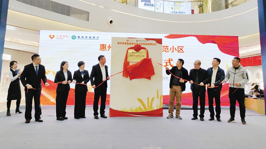 惠州農(nóng)商銀行與天益城舉行“普惠金融戶(hù)戶(hù)通示范小區(qū)”揭牌儀式。