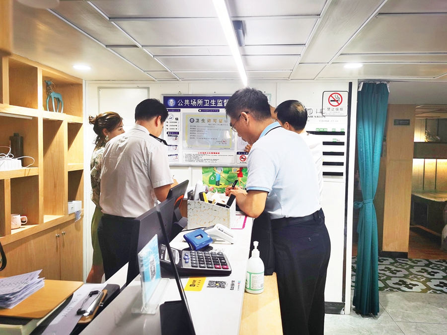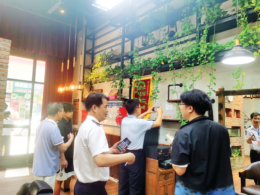 評估組到店鋪開展督導(dǎo)排查;葜萑請(bào)記者鄔玉婷 通訊員楊華坤 攝